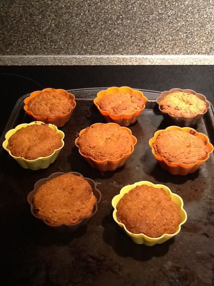 in bowl mix all the dry ingredients and in a small bowl mix the wet ingredients then much the wet into the dry. I measured 1/4 cup if the mix into muffin tins and made 8-10 muffins…bake for 10-15 minutes until golden brown.