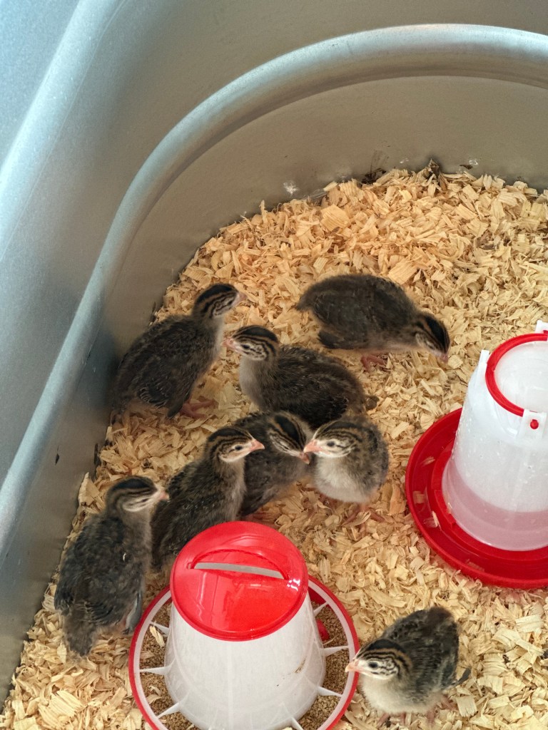 We decided that we should now only get animals after their housing situation is completed and we have their living situation secure. However, one stop at Tractor Supply and our first adventure in game birds began. Let’s be honest: how can you turn down bringing home 8 cute little baby Guinea Hens?!?