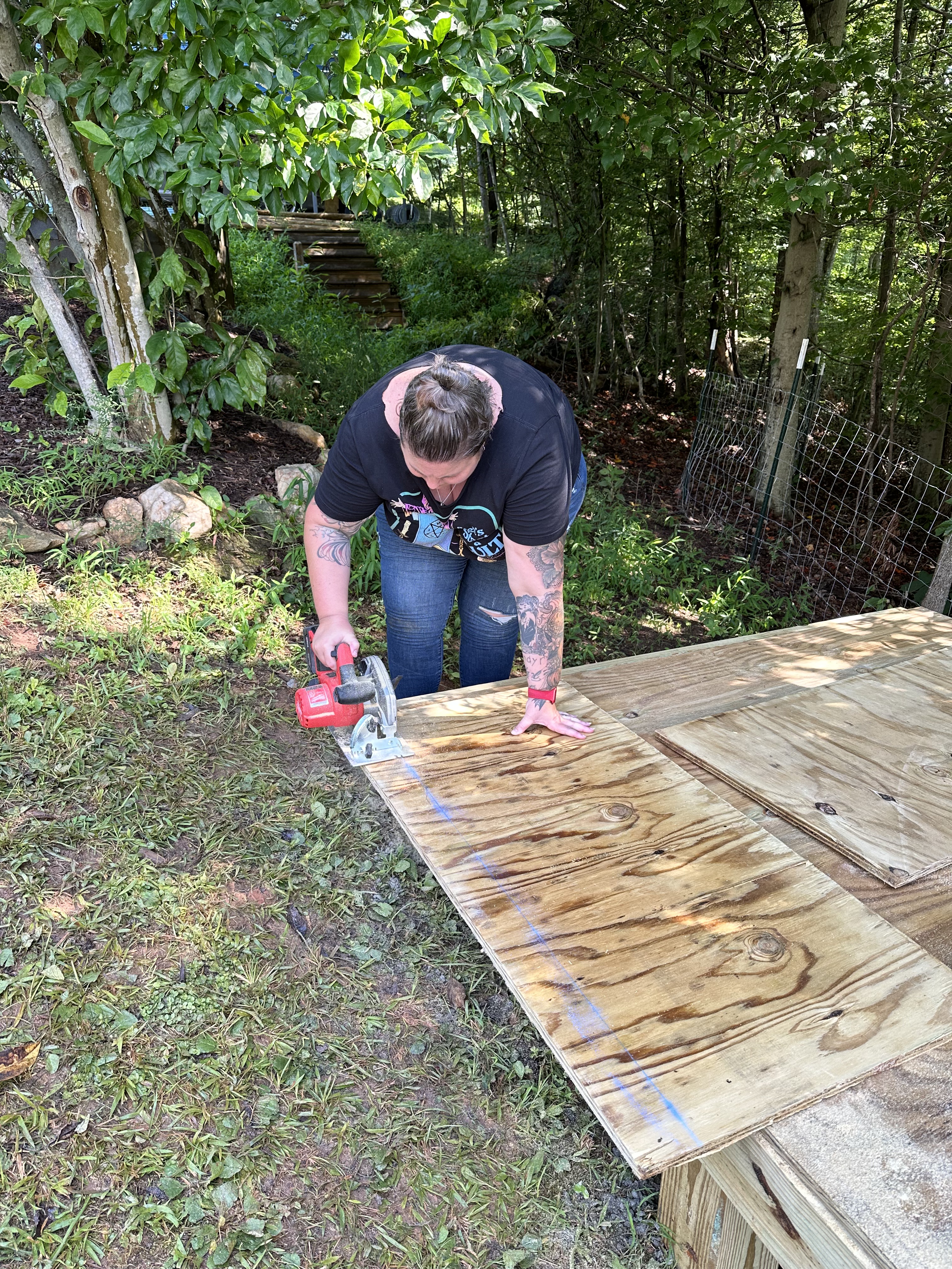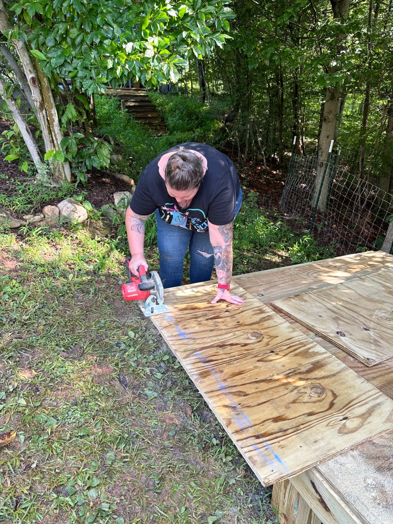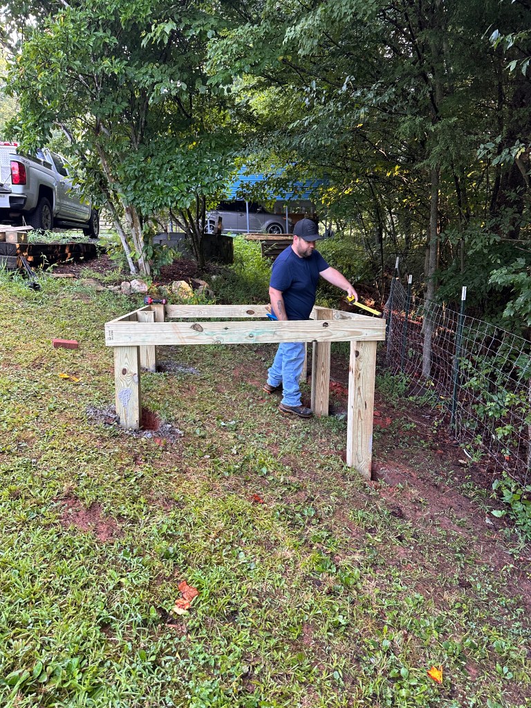 So we again turned to our trusty research source, the internet, and began scouring all the images of Guinea coops and structures we could find. Finally, we agreed that we liked similar structures, but now we needed to figure out how to make this thing. There are benefits of having worked in the construction world for 15+ years, so Tyrel has at least recently seen the structures of buildings. I have helped stand a wall or two, so with our vast experience, we set out to Lowe’s to purchase the required materials…