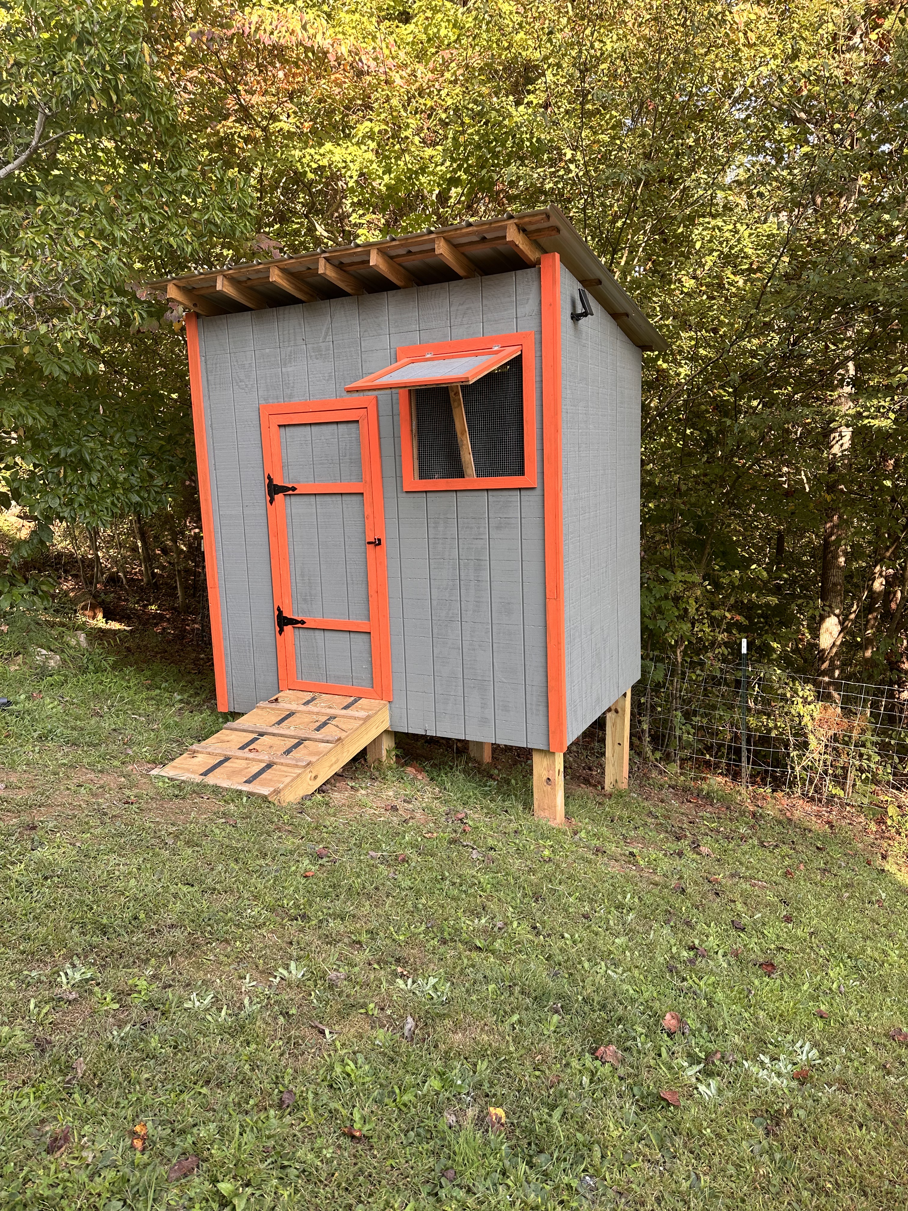 All left was to select our paint colors and build the outdoor ramp so the Guineas could quickly enter and exit the structure. Again, we ventured to Lowes!